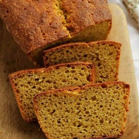 Quando o pão de fubá chegar ao topo da forma e o forno estiver aquecido, leve-o para assar por aproximadamente 35-40 minutos ou até ficar bem douradinho.
